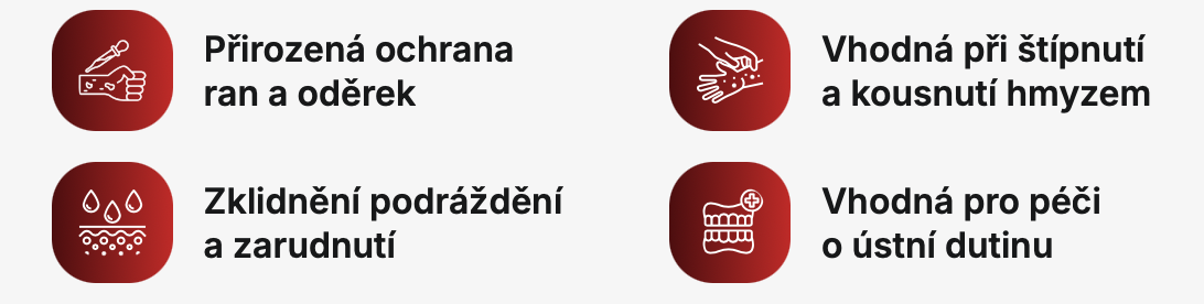 Rány, popáleniny, pokousání hmyzem a afty: Nenaředěné napěňte a naneste přímo na požadované místo.